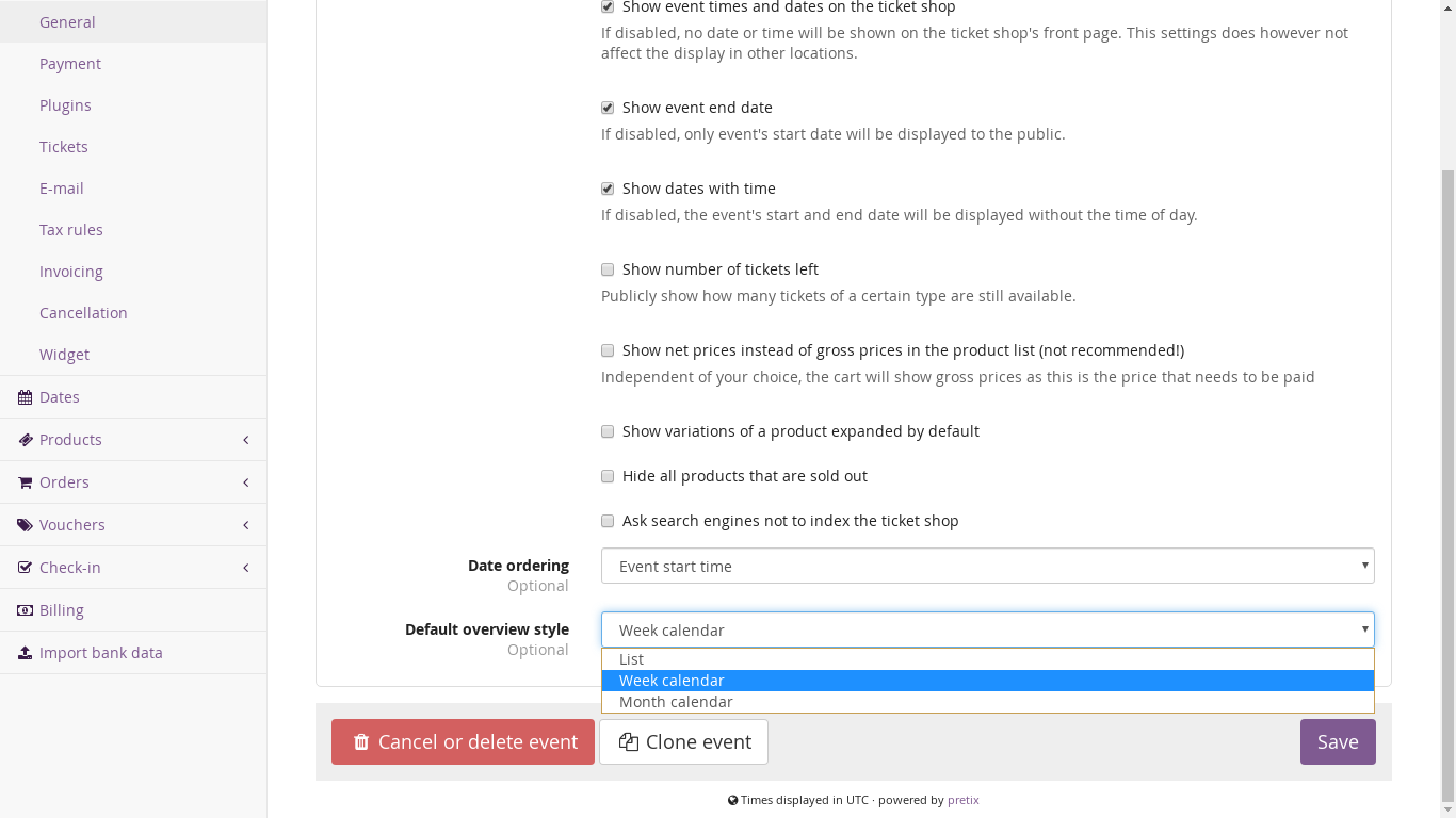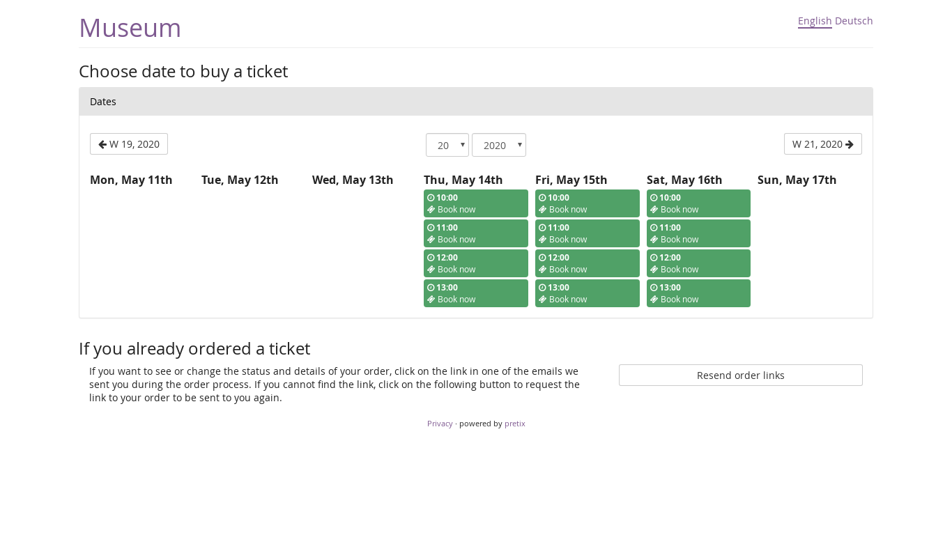 Now, your ticket shop should give users a nice weekly overview over all time slots and their availability: